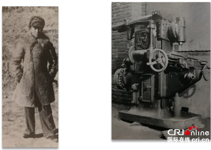 第一张照片的文字说明这么写的:“沈鸿 1938年2月,在八路军办事处协助下,率7名工人携带11台机床,辗转奔赴延安。这对以后陕甘宁边区的工业生产起了重要的奠基作用。1947年加入中国共产党。曾任中央军委军工局一厂厂长,机械总工程师,组织和参与制造出各种机器、设备共134种,参与设计建造了以木炭为燃料的一吨炼铁炉。两次被评为陕甘宁边区特等劳动英雄。毛泽东为其题词‘无限忠诚’。图为沈鸿和他带到延安的11台机床中的1台铣床。”沈鸿原为上海的一个小老板,1937年全面抗日战争爆发后,他奔赴了延安。当时的中共根据地,在极端困难的条件下必须自力更生发展工业,但发展工业还是需要最基本的设备,因此,沈鸿带到延安的11台机床就起到了非常重要的作用,奠定了陕甘宁边区工业生产的基础。同时,本着自力更生的精神,沈鸿也充分发挥了创造性,这种自力更生精神就是红色工业文化的重要内涵。新中国成立后,沈鸿主持制造了九套大型设备,这同样是在缺乏基本条件的情况下自力更生的壮举,由此也可以看到价值观层面的工业文化的重要作用。